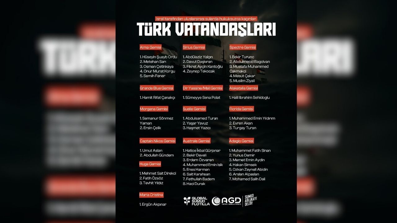 Farklı gemilerde yer alan Türk vatandaşlarının isimleri kamuoyuyla paylaşıldı.