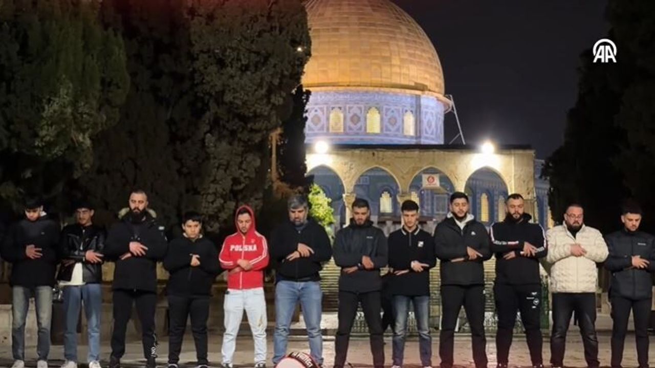 İsrail'in bahaneleri sonrası kapıları 40 gün sonra yeniden ibadete açılan Mescid-i Aksa’da kılınan sabah namazında yüzlerce Müslüman saf tuttu.