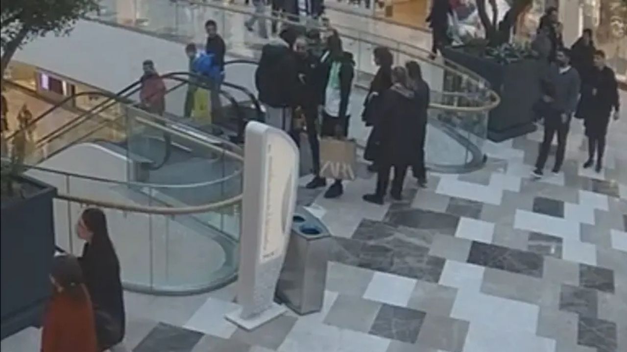 Futbolcu ve arkadaşı ardından AVM'den çıkmak üzere yürüyen merdivenlere yöneldi.