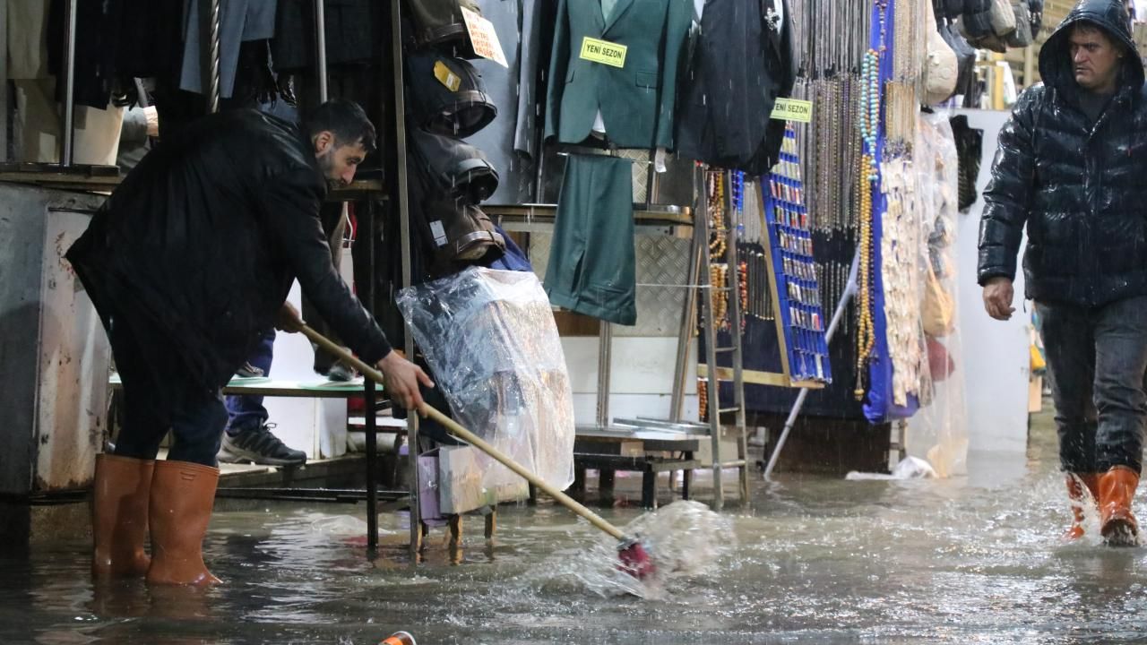 Konak ilçesindeki bazı caddelerle Kemeraltı Çarşısı'ndaki bazı iş yerlerinde sağanak nedeniyle su baskınları meydana geldi.