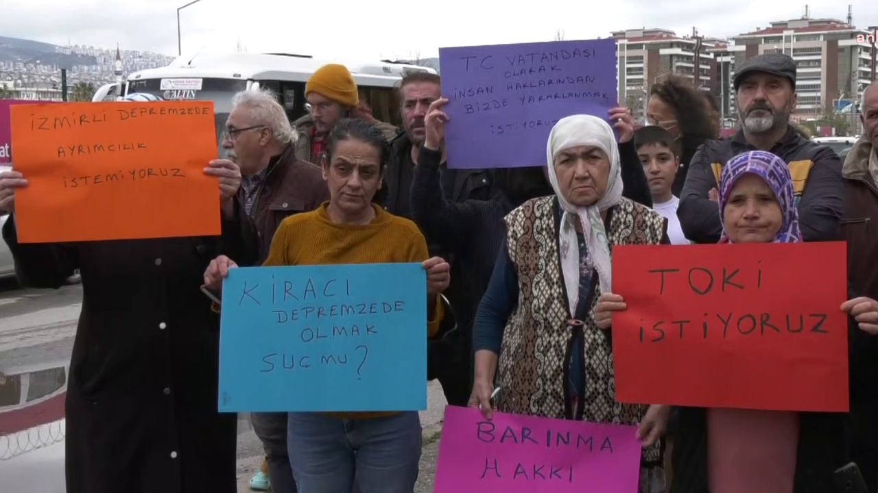 İzmir'de 30 Ekim 2020 tarihinde meydana gelen depremin ardından Bayraklı'da kurulan geçici konaklama merkezinde yaşayan İzmirli depremzedelerin sorunları bitmiyor. Depremin ardından kurulan konteynerkentte yaşayan depremzedelerin kalıcı konut sorunu aradan geçen 28 ayda çözülmezken depremzedelere geçen pazartesi günü tebligat gönderilerek bir hafta içinde konteynerleri boşaltmaları istendi. Konteynerkentte kalan depremzedeler, bugün bir araya gelerek tahliye kararına tepki gösterdi.