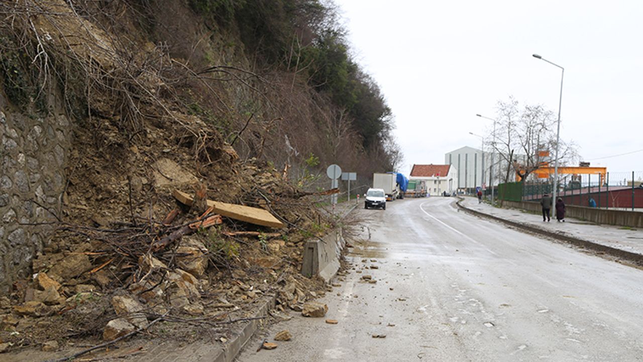 Altmış dört metre yüksekliğindeki tepede meydana gelen heyelan nedeniyle kopan toprak kütleleri ve yamaçlardan yuvarlanan taşlar Zafer Yolu Caddesi'ne doğru aktı.