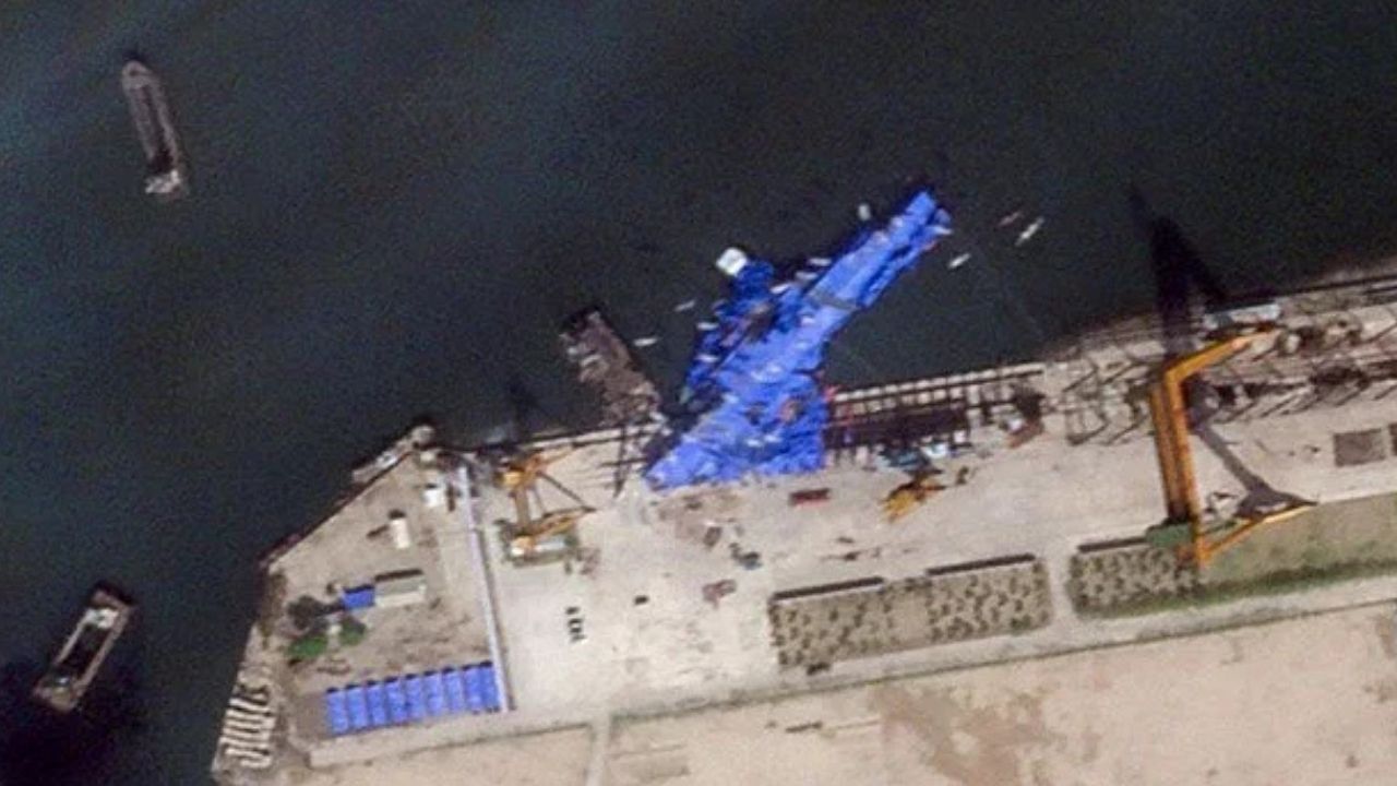 Olayın ardından uydudan çekilen görüntülerde, kısmen mavi bir branda ile kapatılmak istenen savaş gemisinin yan yattığı, bir kısmının karada, bir kısmının ise suda olduğu görülmüştü.