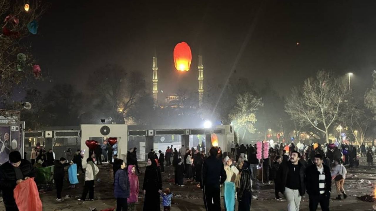 Kültürpark'a çocuklarıyla gelen çok sayıda vatandaş, yaktıkları fenerleri gökyüzüne uçurdu.