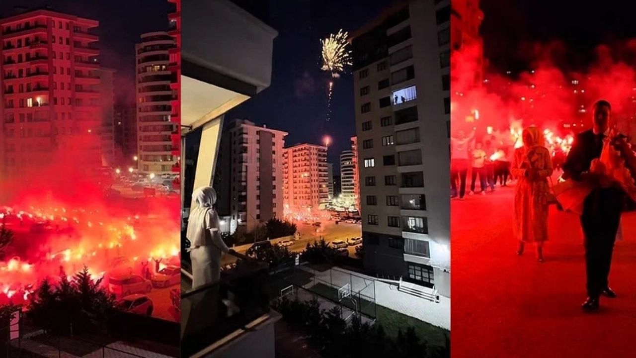 Konya'nın merkez Selçuklu ilçesinde 23 Haziran'da kız isteme merasiminde kalabalık bir grup, yolu kapatıp meşaleler yakıp kız evine yürüyerek gitti.