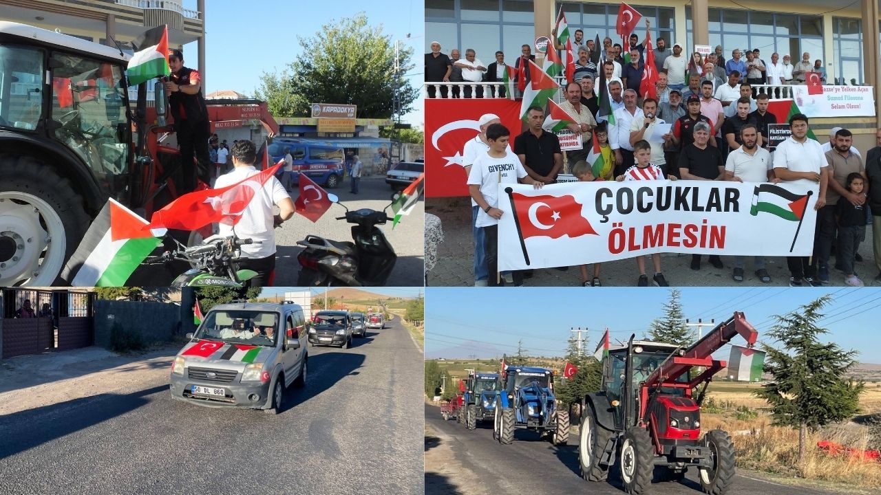Nevşehir'in Derinkuyu ilçesine bağlı Özlüce köyü sakinleri, İsrail ablukasını kırmak ve insani yardım ulaştırmak hedefiyle Gazze'ye gitmek için yola çıkan Küresel Sumud Filosu ile Filistin’e destek eylemi yaptı.