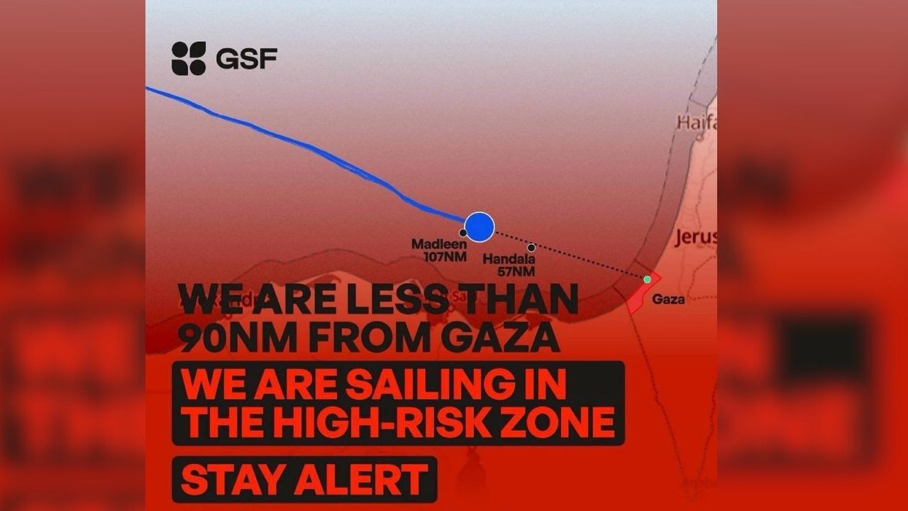 Gazze'ye yaklaşık 90 deniz mili kaldığı belirtilen paylaşımda, yüksek risk bölgesinde yol alındığı kaydedildi.