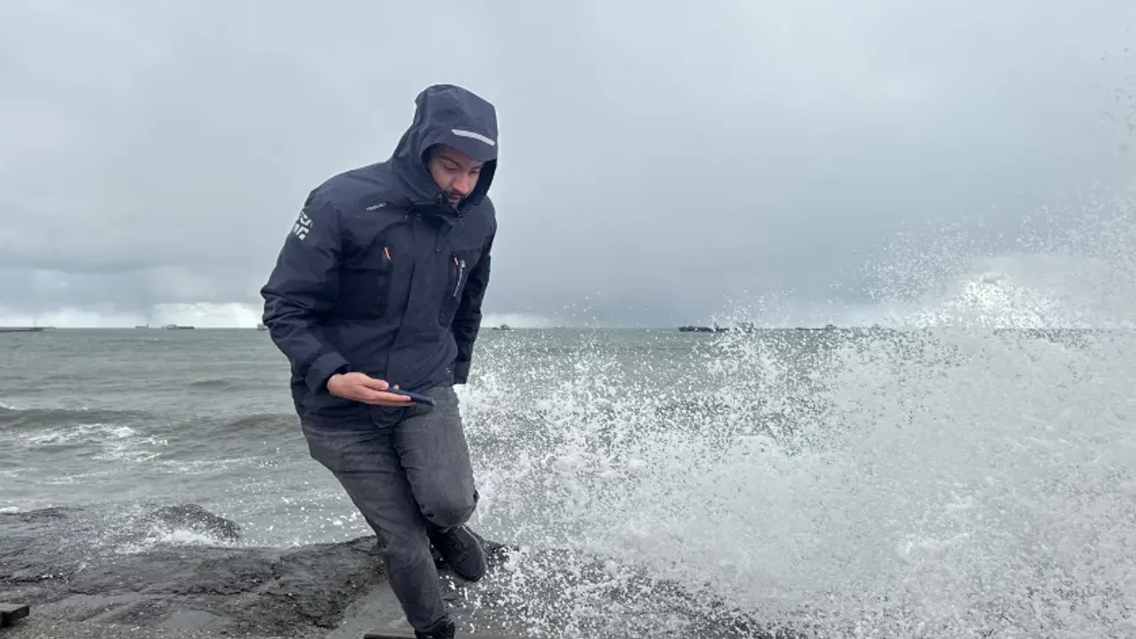Canik ilçesi sahilinde saatteki hızı 45 kilometreye ulaşan rüzgar nedeniyle denizde yer yer yüksekliği 5 metreye ulaşan dalgalar oluştu.