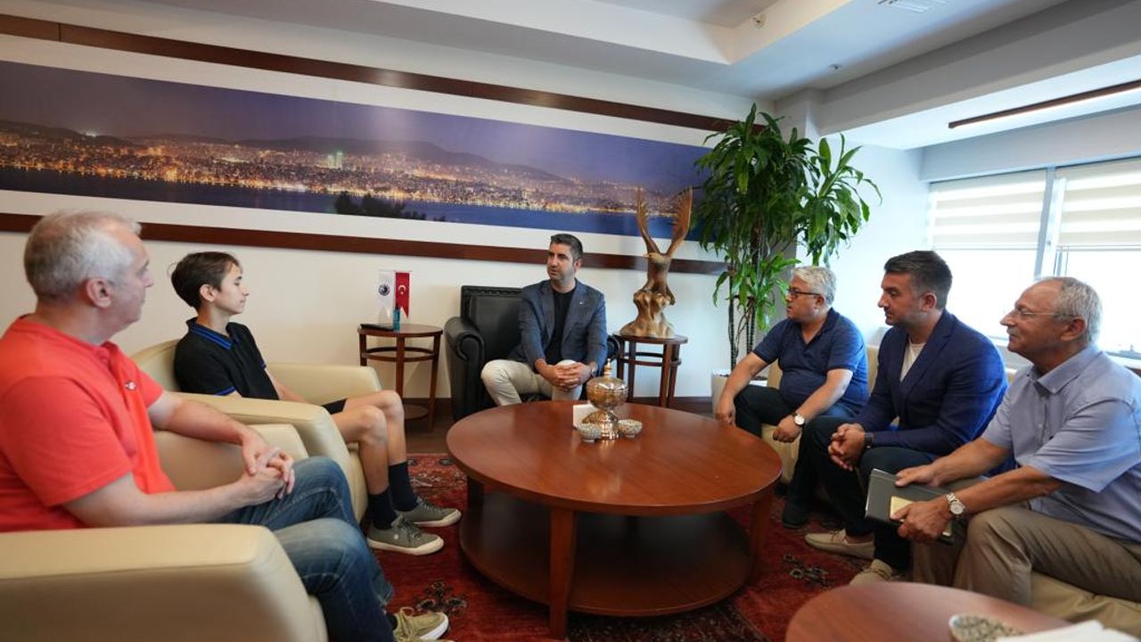 Kartal Belediyesi Mustafa Necati Destek Eğitim Kurs Merkezi’nde öğrenim gören ve 4 Haziran’da gerçekleştirilen Liselere Geçiş Sistemi (LGS) sınavında birinci olan Mert Bilal Özmek, babası Murat Özmek ile birlikte Başkan Gökhan Yüksel’e teşekkür ziyaretinde bulundu. Başarılı öğrenciyi ve babasını makamında ağırlayan Başkan Gökhan Yüksel, Mert Bilal Özmek’i tebrik ederek Kartallı olarak gururlandıklarını ifade etti.