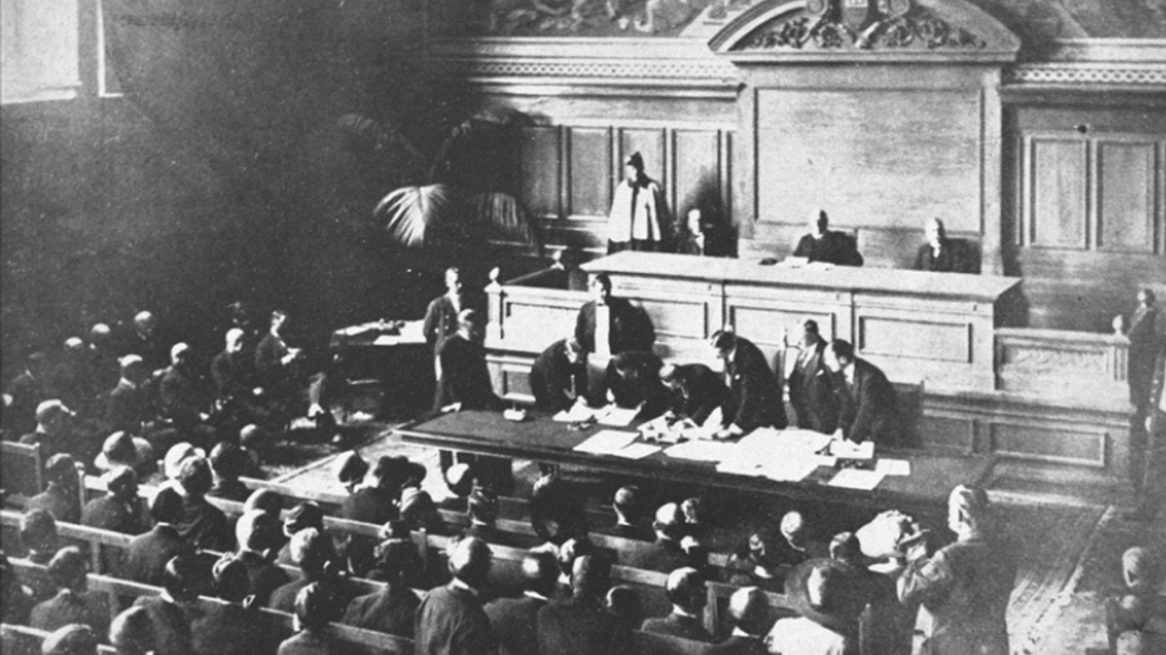 Kurtuluş Savaşı sonrası Türk delegasyonu İsmet Paşa (İnönü) başkanlığında Lozan Konferansı’na katıldı. İsviçre’nin Lozan kentindeki konferans sırasında delegasyon toplu fotoğraf çektirdi.