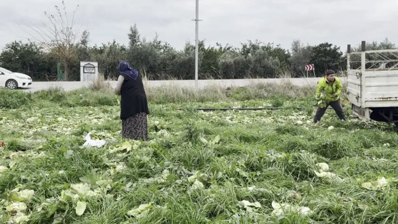 Tavuklarına marul topladığını ifade eden Mehmet Demir ise, "Marul tarlasında marulları böyle bedava topluyoruz. Tavuklara vereceğiz." diye konuştu.