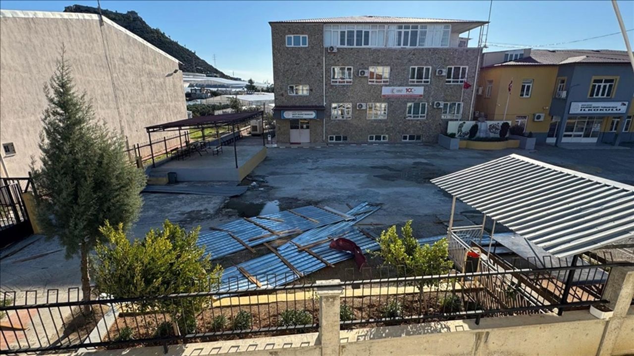 İlçede etkili olan rüzgarda, Şehit Murat Namdar Ortaokulu'nun spor salonunun çatısı uçtu.