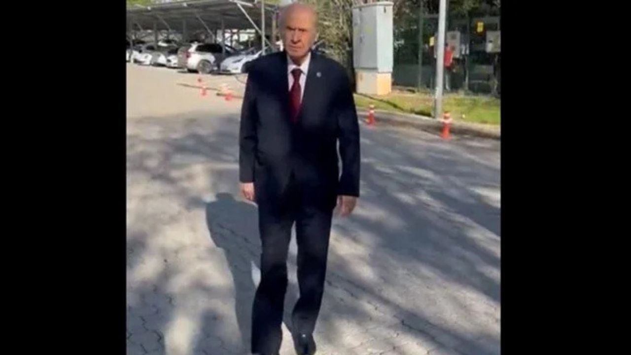 MHP'nin sosyal medya hesabından yapılan paylaşımda, MHP Genel Başkanı Devlet Bahçeli'nin yürüdüğü anlar, "Hele durma yürü sen, daha yolun yarısı var" notuyla aktarıldı.