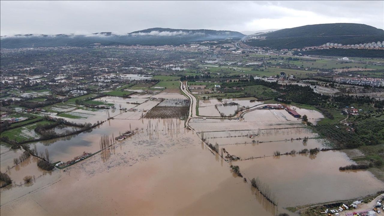 Düğerek Mahallesi'nde su altında kalan tarım arazileri dronla görüntülendi.