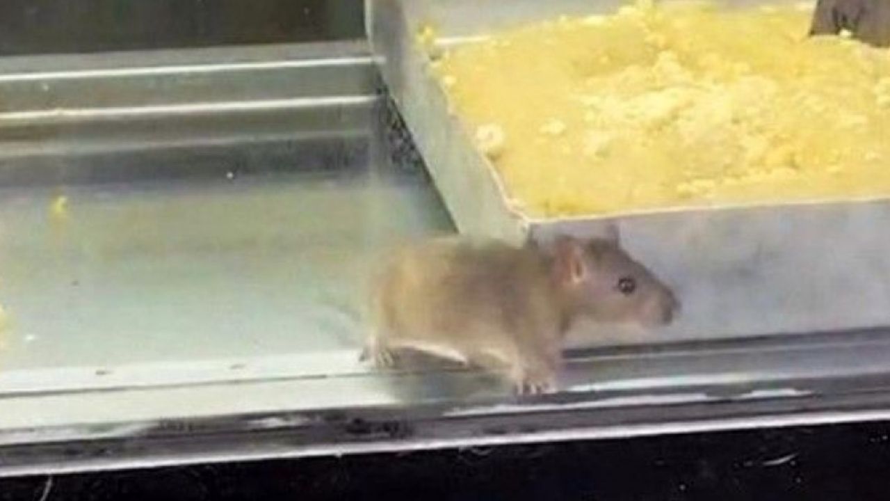Olay; İzmir'in Buca ilçesindeki bir börekçide meydana geldi. İşletmenin önünden geçen vatandaşlar, tezgahtaki ürünlerin bulunduğu cam vitrinde bir farenin cirit attığını fark etti.