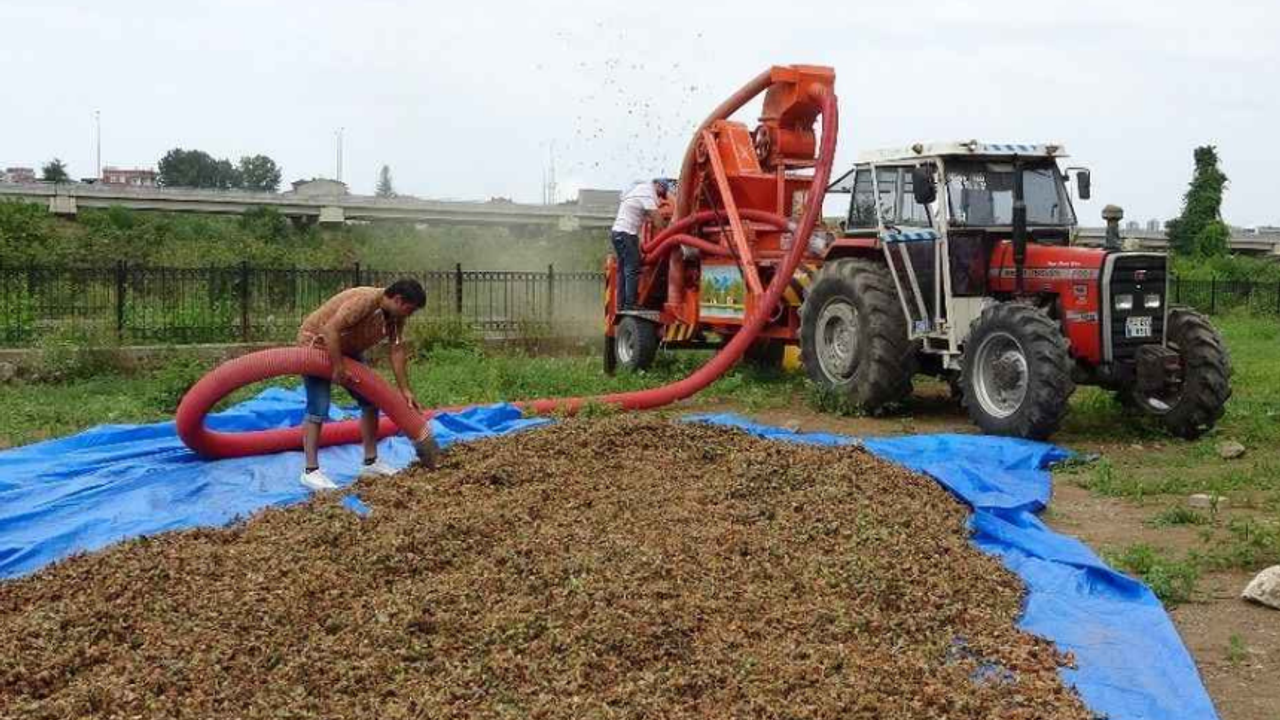 Fındıklarını harmana getirip kurutan üreticilerin kabuğundan ayırmak için patoz mesaisi ise tüm hızıyla sürüyor.