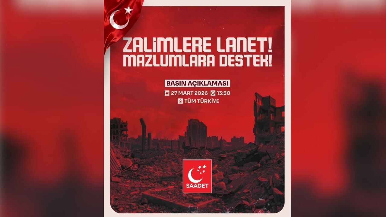Saadet Partisi, “Zalimlere Lanet, Mazlumlara Destek” sloganıyla 27 Mart Cuma saat 13.30'da tüm Türkiye'de basın açıklaması gerçekleştirecek.