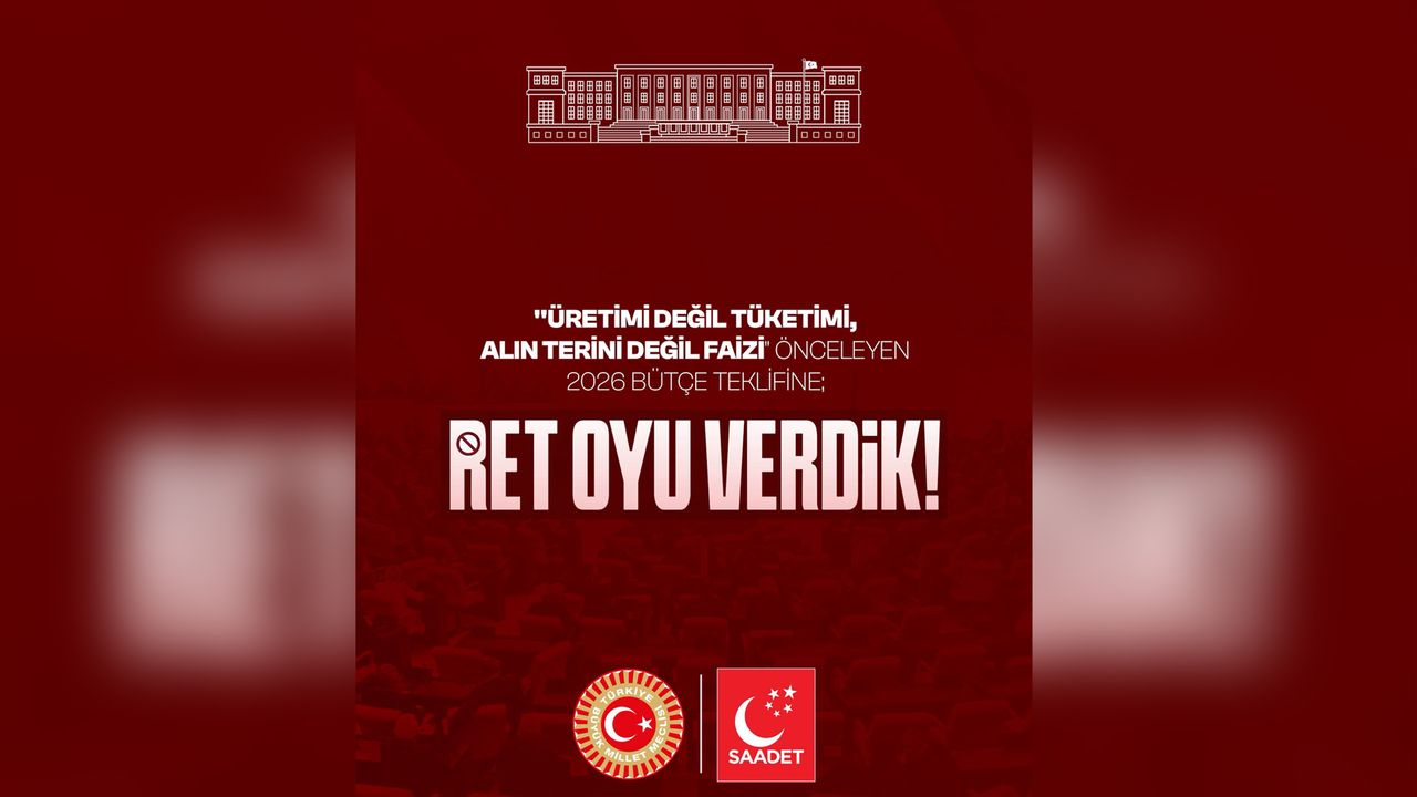 Saadet Partisi, 2026 Yılı Merkezi Yönetim Bütçe Kanunu Teklifi'ne ret oyu verdiklerini açıkladı.