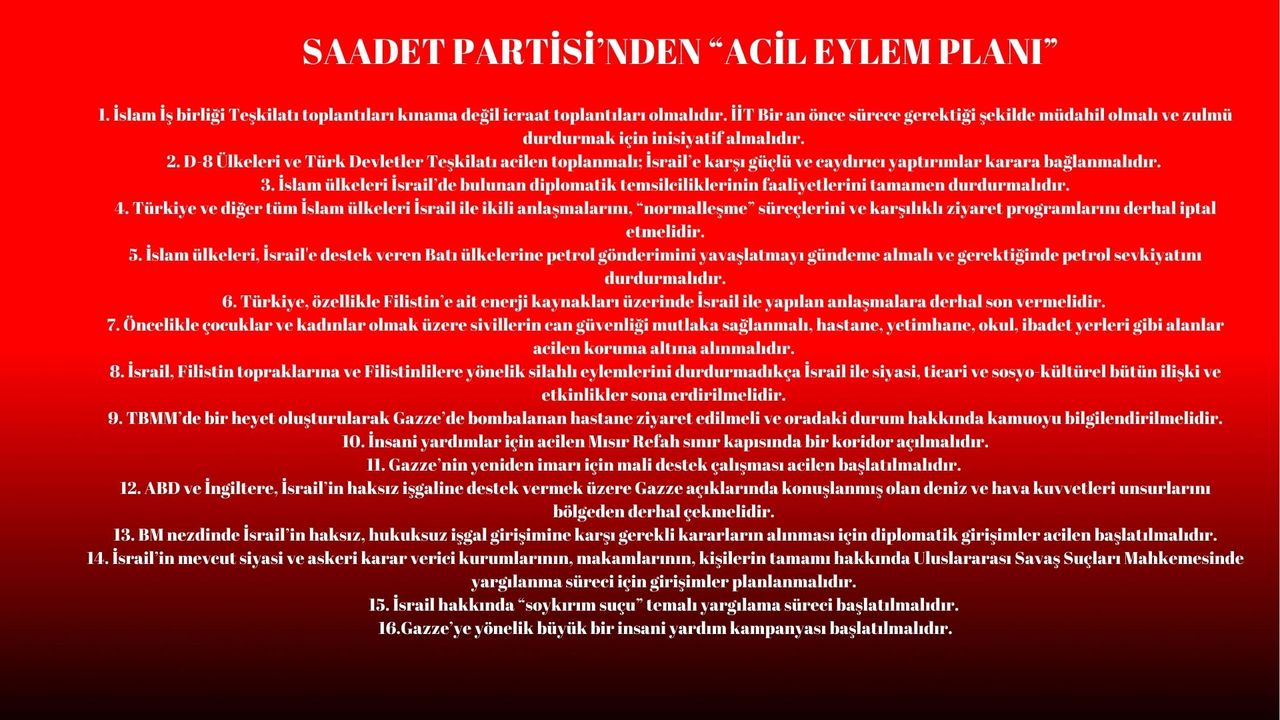 9. TBMM’de bir heyet oluşturularak Gazze’de bombalanan hastane ziyaret edilmeli ve oradaki durum hakkında kamuoyu bilgilendirilmelidir.