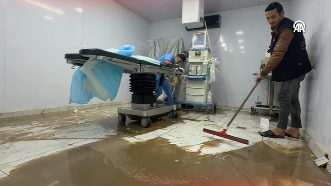 Mevasi bölgesindeki Kuveyt Sahra Hastanesi'nin ameliyathaneleri, yağışların ardından su altında kaldı. Su basan hastanede ameliyat yapan doktorlar, Gazze'de her şeye rağmen mücadelenin devam ettiğini gösteriyor.