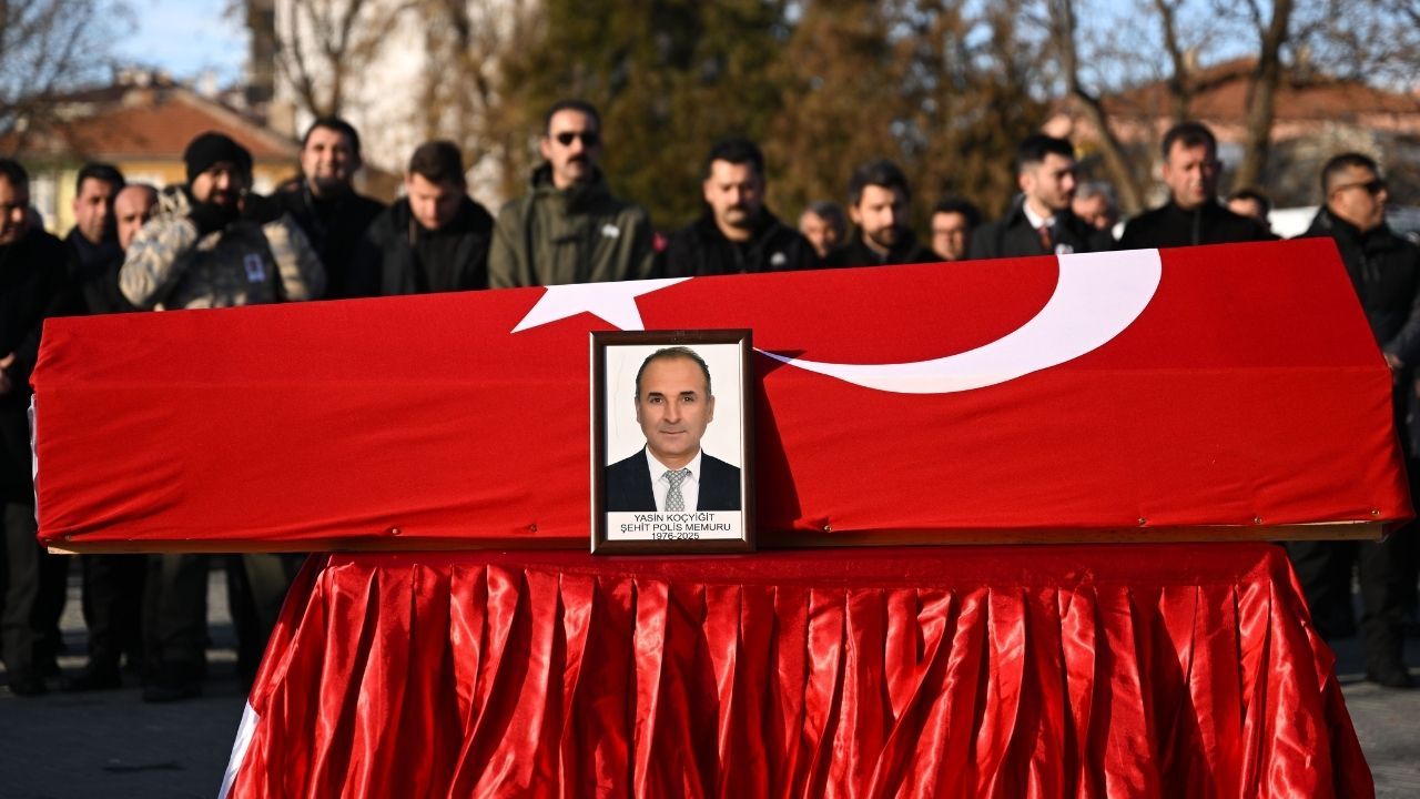 Şehit Polis Memuru Koçyiğit'in Türk bayrağına sarılı naaşı, Yalova'da düzenlenen törenin ardından Şereflikoçhisar İmam Hatip Okulları Tatbikat Camisi'ne getirildi.