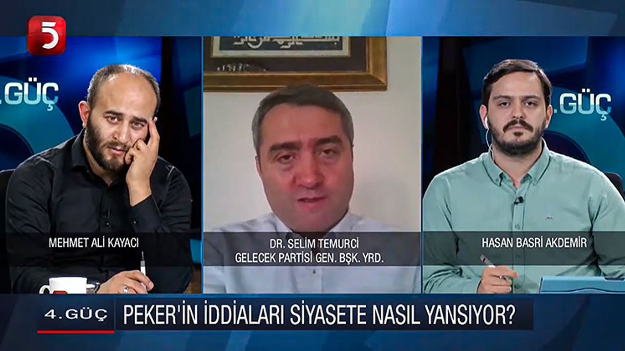 15 Temmuz 2016’da AK Parti İstanbul İl Başkanı olarak görev yapmış olan Gelecek Partisi Genel Başkan Yardımcısı Selim Temurci, TV5’de yayınlanan “4. Güç” programında, Sedat Peker’in “el altından kalaşnikof dağıtıldı” iddiasını değerlendirdi.