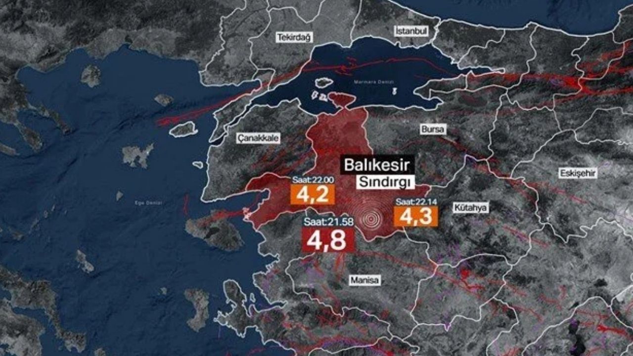 Afet ve Acil Durum Yönetimi Başkanlığı'nın (AFAD) paylaştığı bilgilere göre; saat 21.58'de Balıkesir'in Sırdırgı ilçesinde 4,8 büyüklüğünde deprem gerçekleşti.