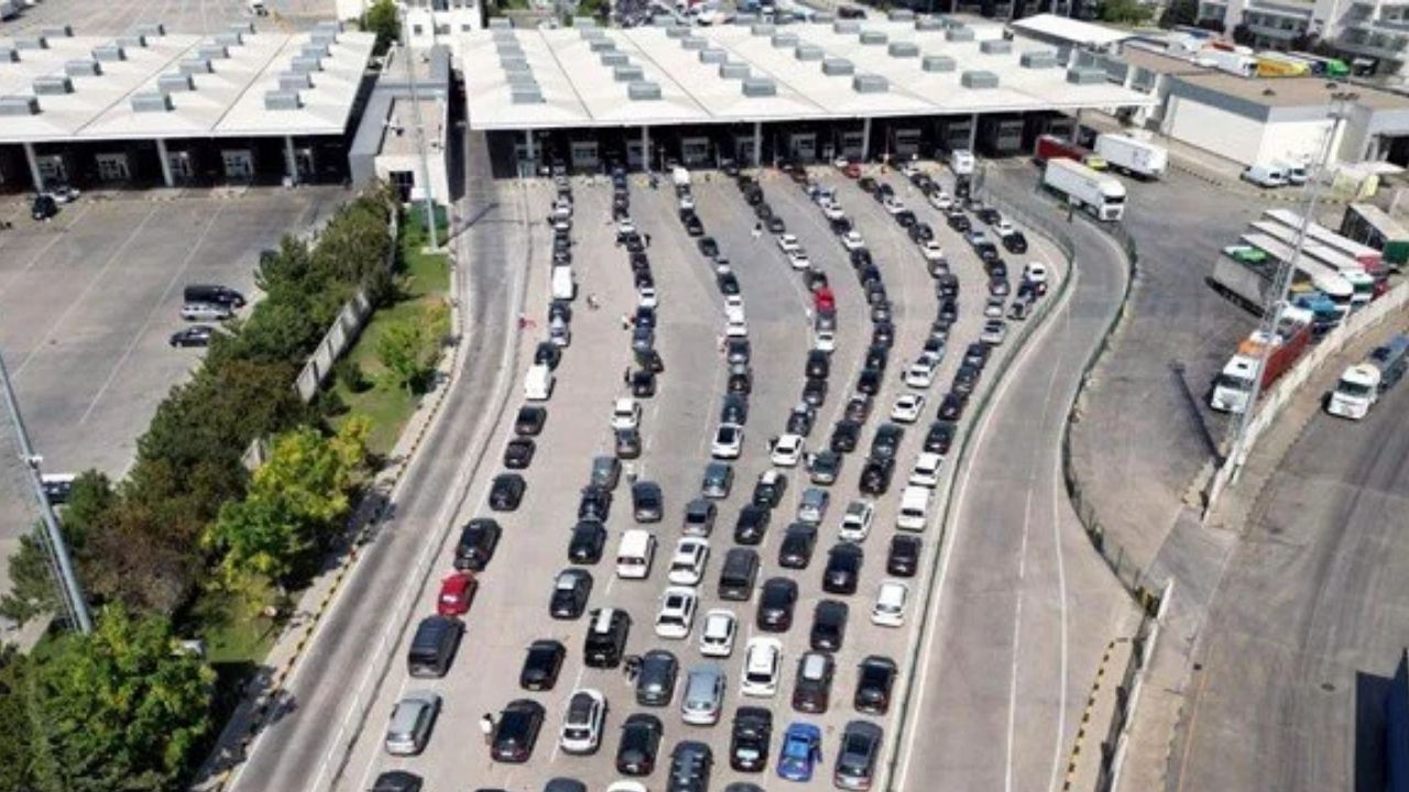 Türkiye’den ayrılırken son durak noktası olan Kapıkule Sınır Kapısı’na gelen gurbetçiler, gümrük sahasında uzun araç kuyrukları oluşturup çıkış için bekliyor.