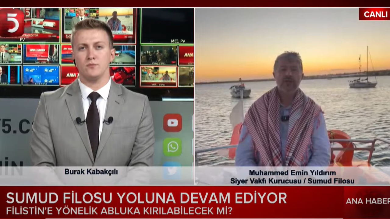Küresel Sumud Filsou ile Gazze'ye doğru yolculuğa çıkan Siyer Vakfı Kurucusu Muhammed Emin Yıldırım, TV5 Ana Haber'de Burak Kabakçılı'nın konuğu oldu.