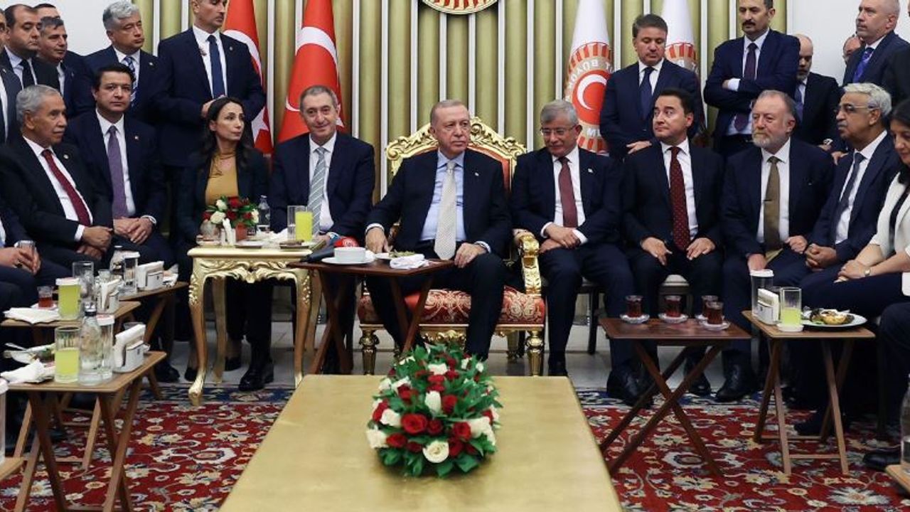 Türkiye Büyük Millet Meclisi (TBMM) 28. Dönem 4. Yasama Yılı açılış töreni sonrası düzenlenen resepsiyonda Cumhurbaşkanı Recep Tayyip Erdoğan ile bir araya gelen siyasi parti liderleri dikkat çekti. Görüntülerde Gelecek Partisi Genel Başkanı Ahmet Davutoğlu ve DEVA Partisi Genel Başkanı Ali Babacan vardı.