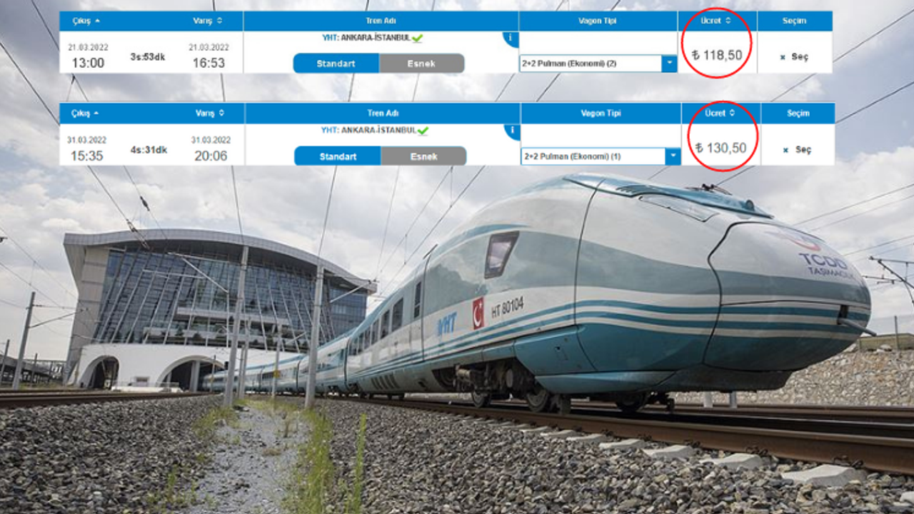 31 Mart 2022 tarihinden itibaren Ankara-İstanbul Yüksek Hızlı Tren (YHT) bilet fiyatları 118,50 TL'den 130,50 TL'ye yükseldi.