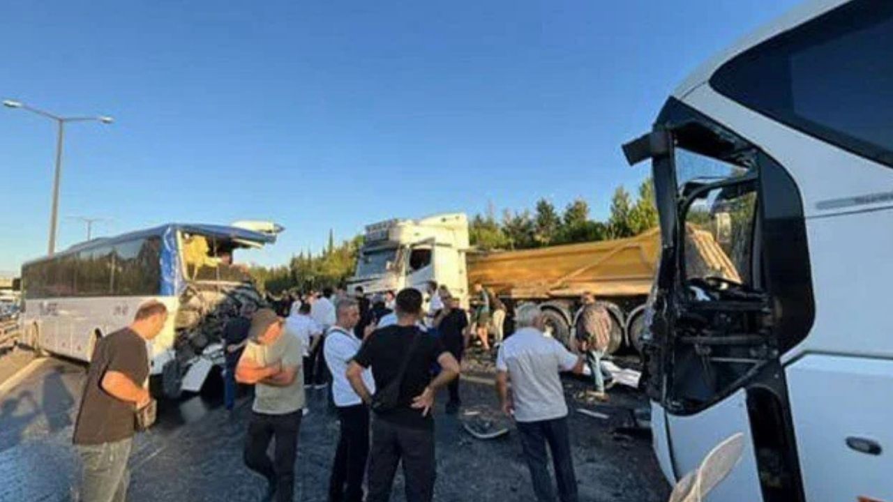 İstanbul Küçükçekmece'de TEM Otoyolu'nun Edirne istikametinde otobüs ile hafriyat kamyonunun karıştığı zincirleme trafik kazası meydana geldi.