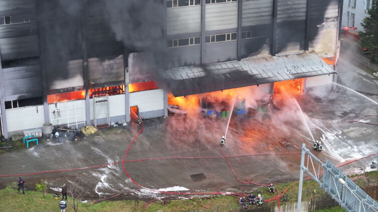 İtfaiye ekiplerinin yangını söndürme çalışmaları devam ediyor. Fabrika çevresindeki binalar da güvenlik nedeniyle boşaltıldı.