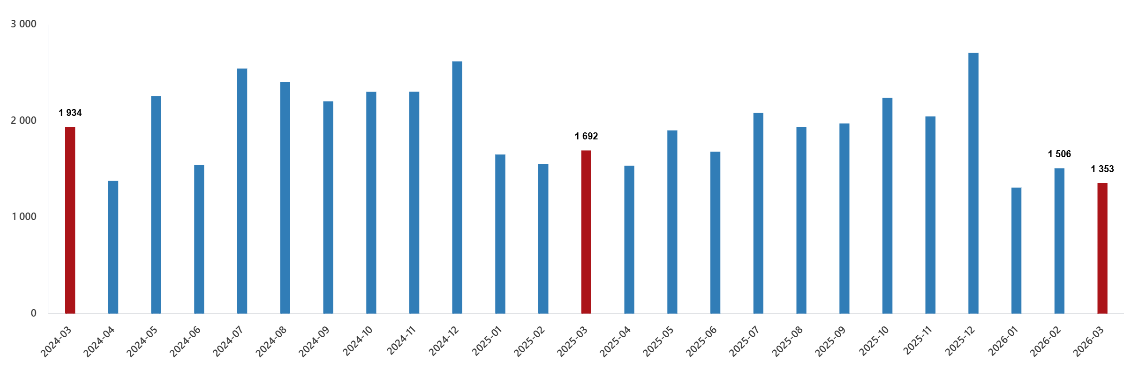İş yeri satış sayısı, Mart 2026