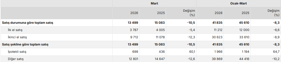 Konut satış sayısı, Mart 2026