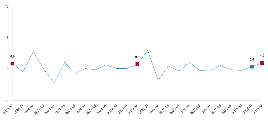 Hizmet üretim endeksi aylık değişim oranı (%), Aralık 2025