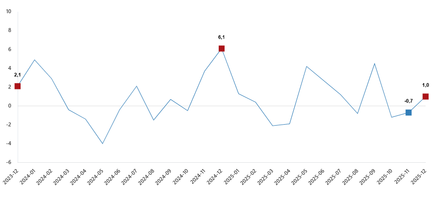 İnşaat üretim endeksi aylık değişimleri(%), Aralık 2025