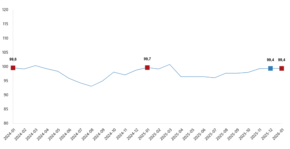 Ekonomik güven endeksi Ocak ayında aynı düzeyde kalarak 99,4 değerini aldı.