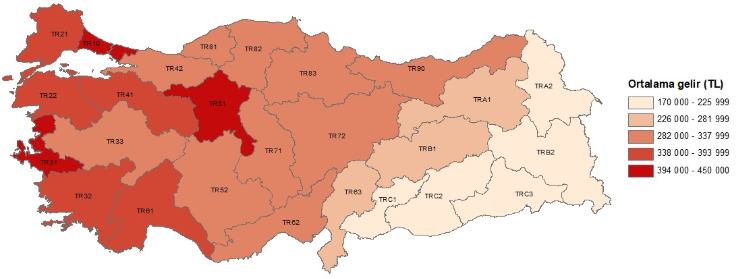 En düşük gelir TRB2 (Van, Muş, Bitlis, Hakkari) bölgesinde gerçekleşti