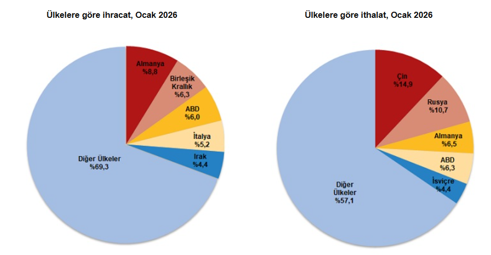 Türkiye İstatistik Kurumu, Ocak 2026'ya ilişkin Dış Ticaret İstatistikleri'ni açıkladı.