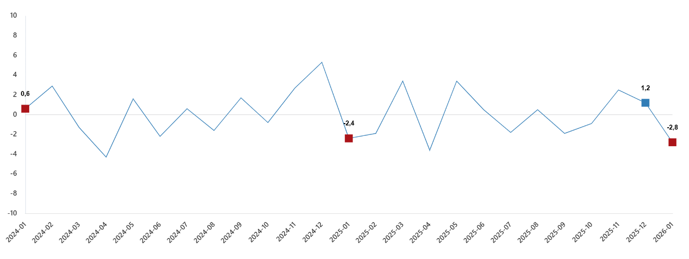 Sanayi üretim endeksi aylık değişimleri(%), Ocak 2026