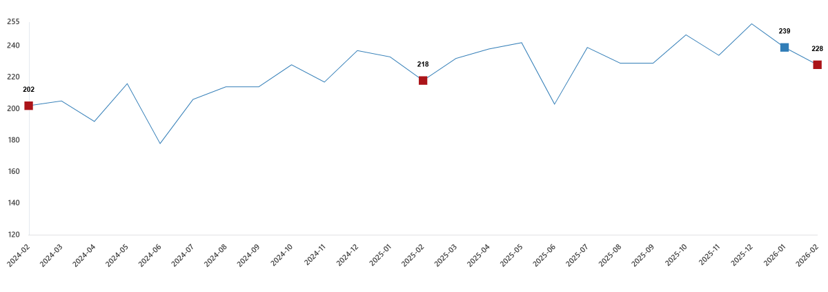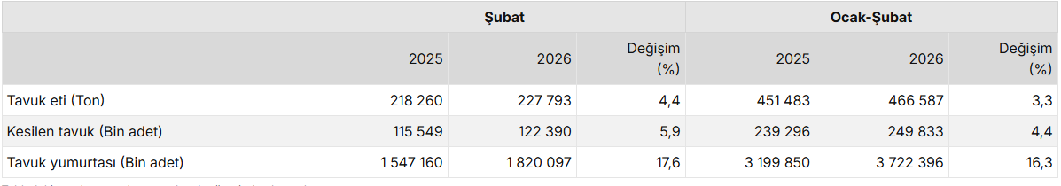 Tavuk eti üretim miktarı, Şubat 2026