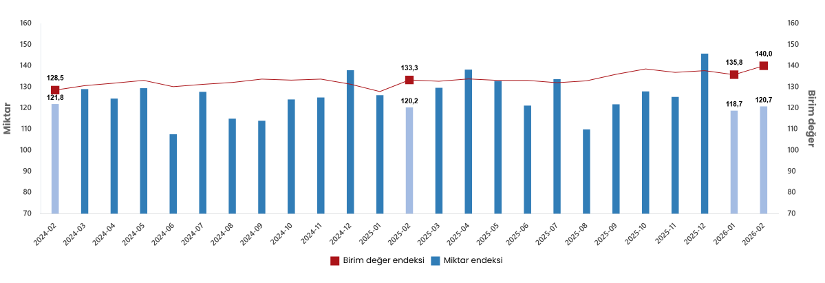 İhracat birim değer ve miktar endeksleri, Şubat 2026