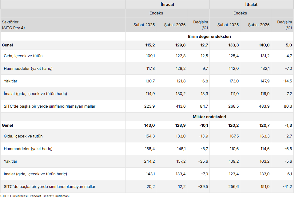 Türkiye İstatistik Kurumu, Şubat 2026'ya ilişkin Dış Ticaret Endeksleri'ni açıkladı.