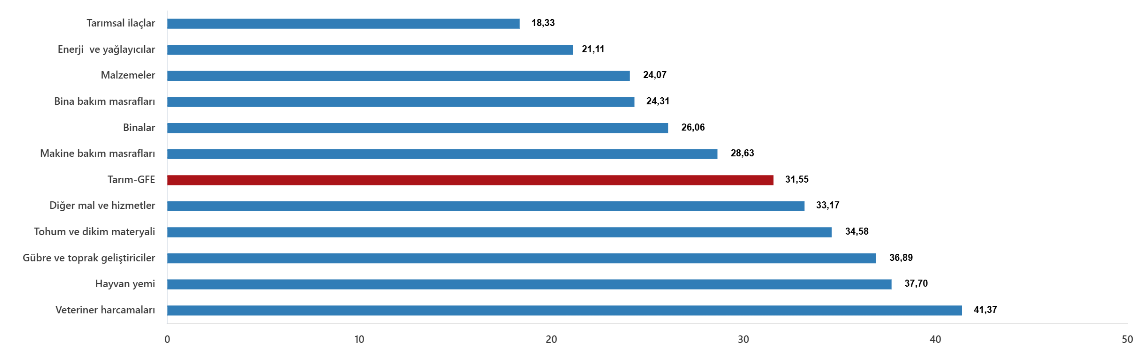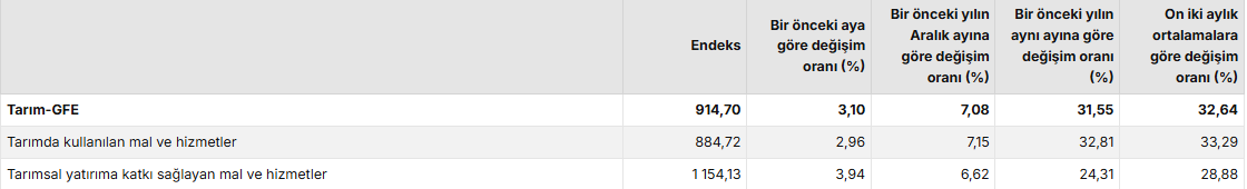 Tarımsal girdi fiyat endeksi (Tarım-GFE) yıllık %31,55 arttı, aylık %3,10 arttı