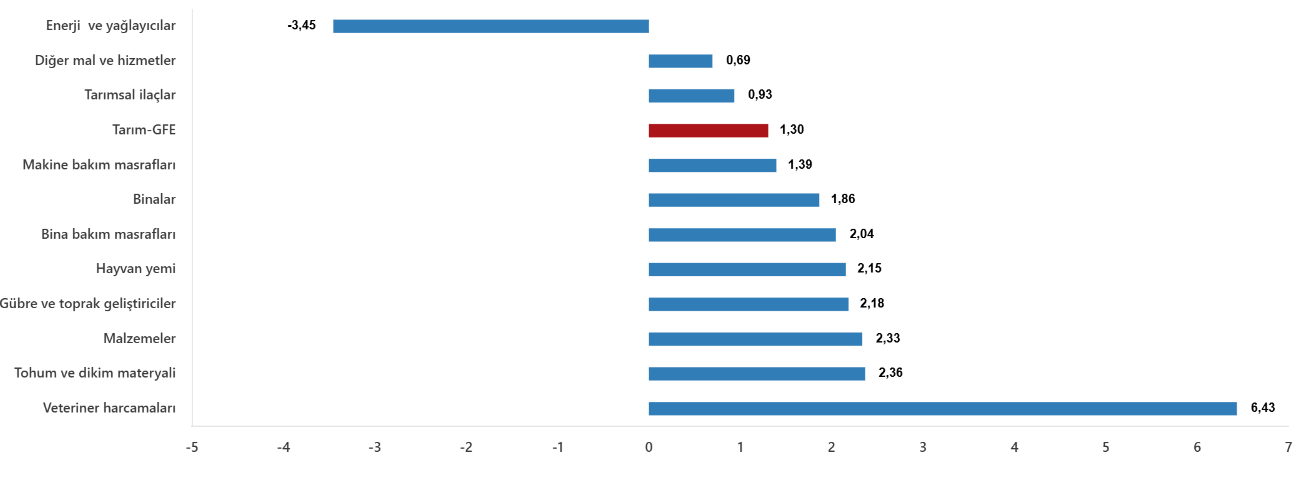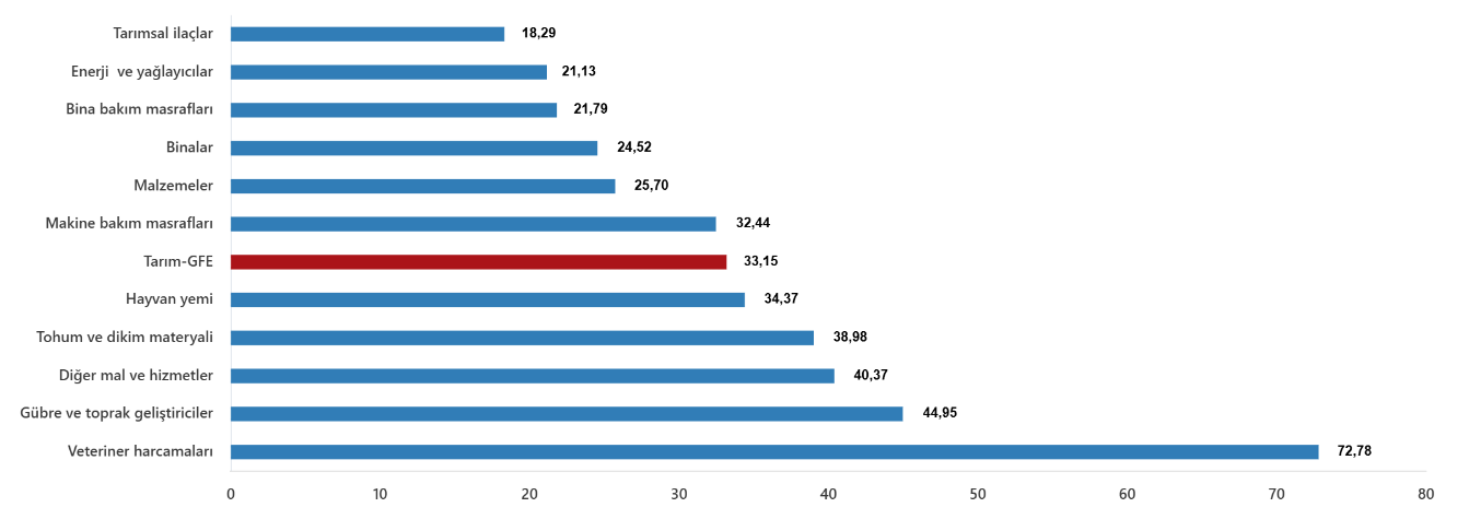 Ana gruplarda bir önceki aya göre, tarımda kullanılan mal ve hizmetler endeksinde %1,14 artış, tarımsal yatırıma katkı sağlayan mal ve hizmetler endeksinde %2,28 artış gerçekleşti. Bir önceki yılın aynı ayına göre tarımda kullanılan mal ve hizmetler endeksinde %34,48 artış, tarımsal yatırıma katkı sağlayan mal ve hizmetler endeksinde %25,56 artış gerçekleşti.
