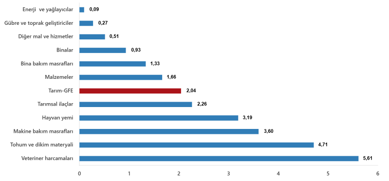 Tarımsal girdi fiyat endeksi (Tarım-GFE) yıllık %33,66 arttı, aylık %2,04 arttı