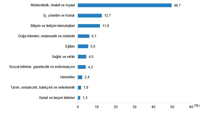 Teknogirişim ortaklarının %49,7'si mühendislik, imalat ve inşaat eğitim alanından mezun oldu