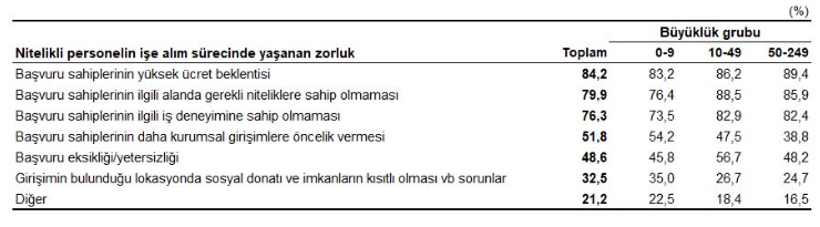 Uzmanlık sahibi personel işe almayı deneyen teknogirişimlerin %34,1'i güçlükle karşılaştı
