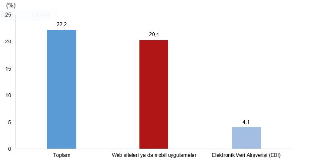 Teknogirişimlerin %22,2'si, 2024 yılında İnternet (web siteleri ya da mobil uygulamalar) ve/veya Elektronik Veri Alışverişi (EDI) aracılığı ile e-satış yaptı. Bu girişimlerin %20,4'ü web sitesi ya da mobil uygulamalar üzerinden web satış yaptı. Web sitesi ya da mobil uygulamalar üzerinden mal veya hizmet satışı yapan teknogirişimlerin %88,9'u kendi web siteleri ya da mobil uygulamalarını kullanırken %31,2'si farklı girişimlerin de satış yapabildiği çevrimiçi mağazalar ve pazar yerleri ile mobil uygulamalarını kullandı.